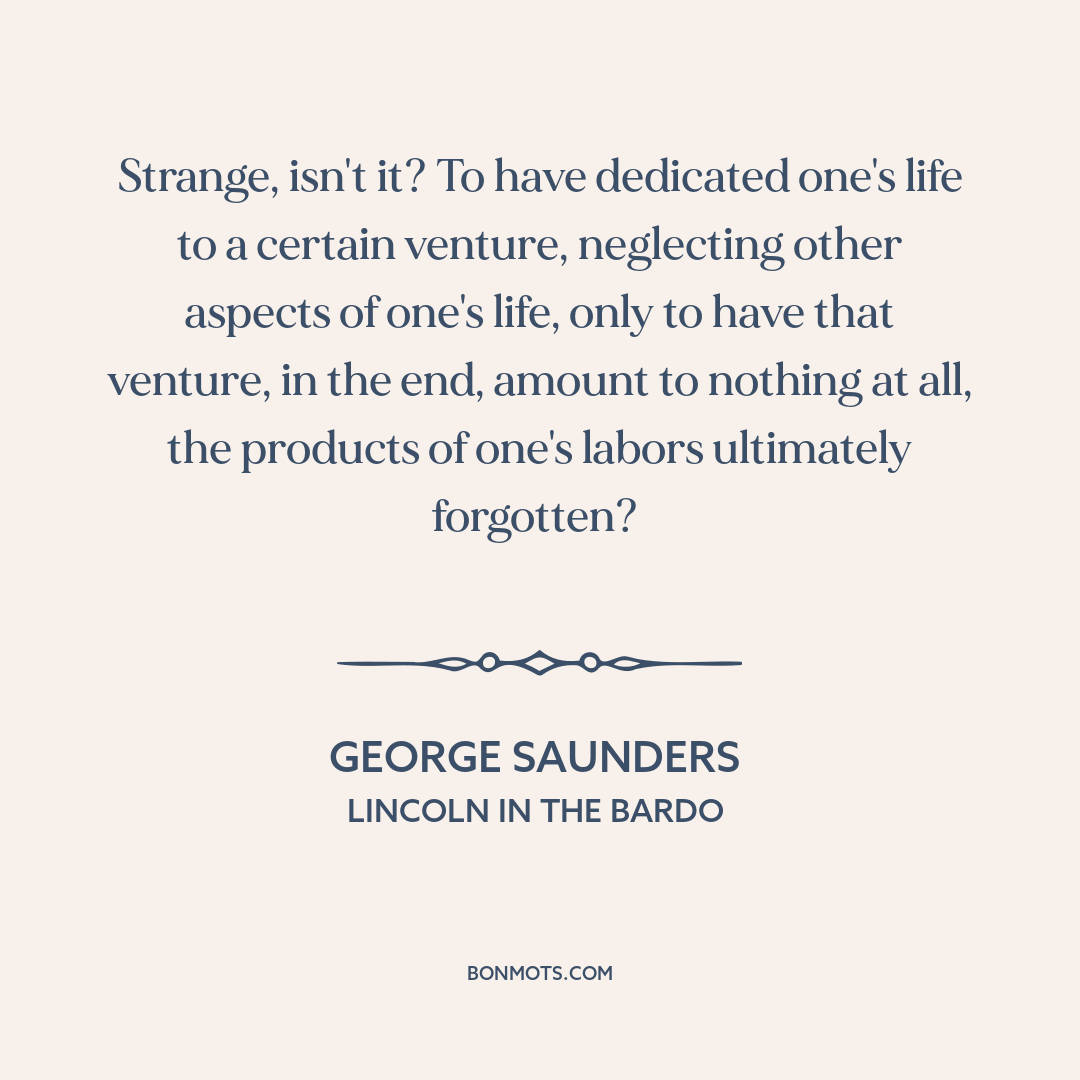 Strange, isn't it? To have dedicated one's life to a certain venture, neglecting other aspects of one's life, only to have that venture, in the end, amount to nothing at all, the products of one's labors ultimately forgotten?