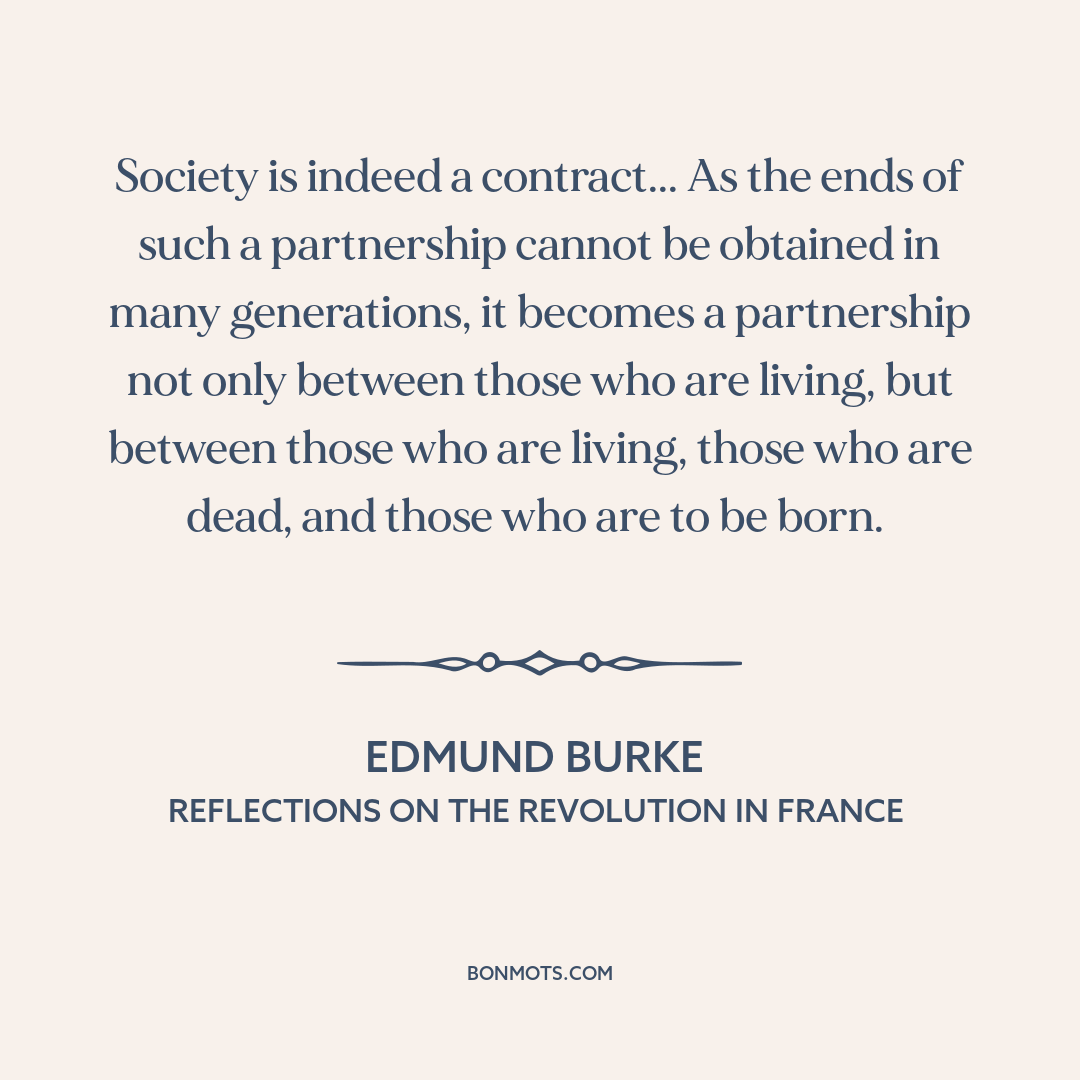 Society is indeed a contract... As the ends of such a partnership cannot be obtained in many generations, it becomes a partnership not only between those who are living, but between those who are living, those who are dead, and those who are to be born.