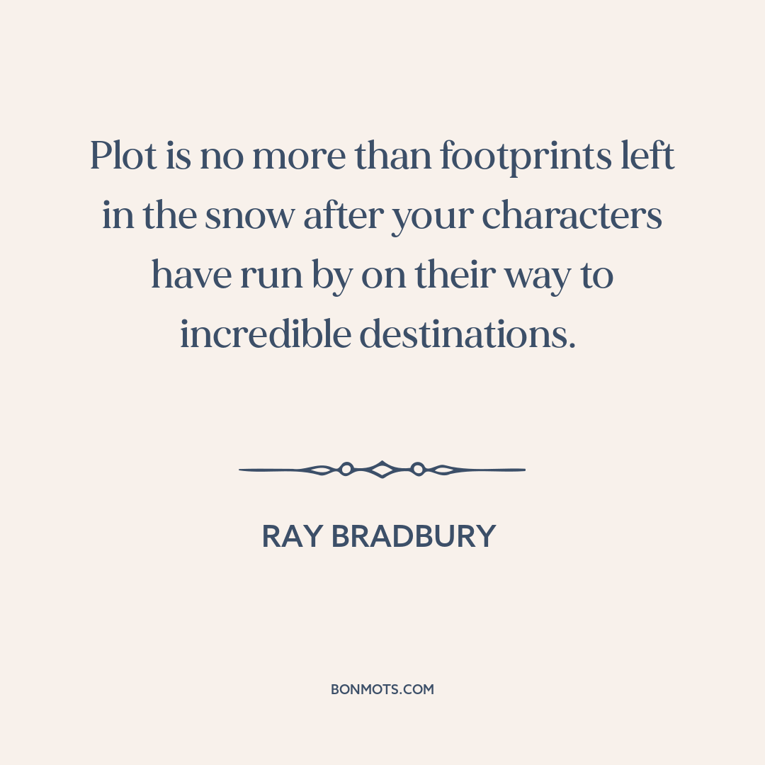 Plot is no more than footprints left in the snow after your characters have run by on their way to incredible destinations.