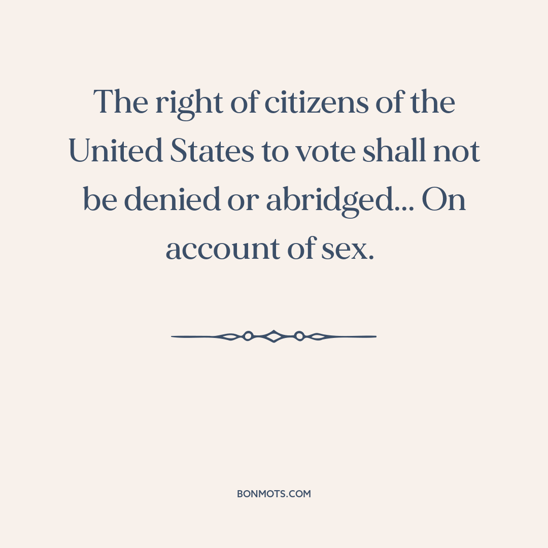 The right of citizens of the United States to vote shall not be denied or abridged... On account of sex.