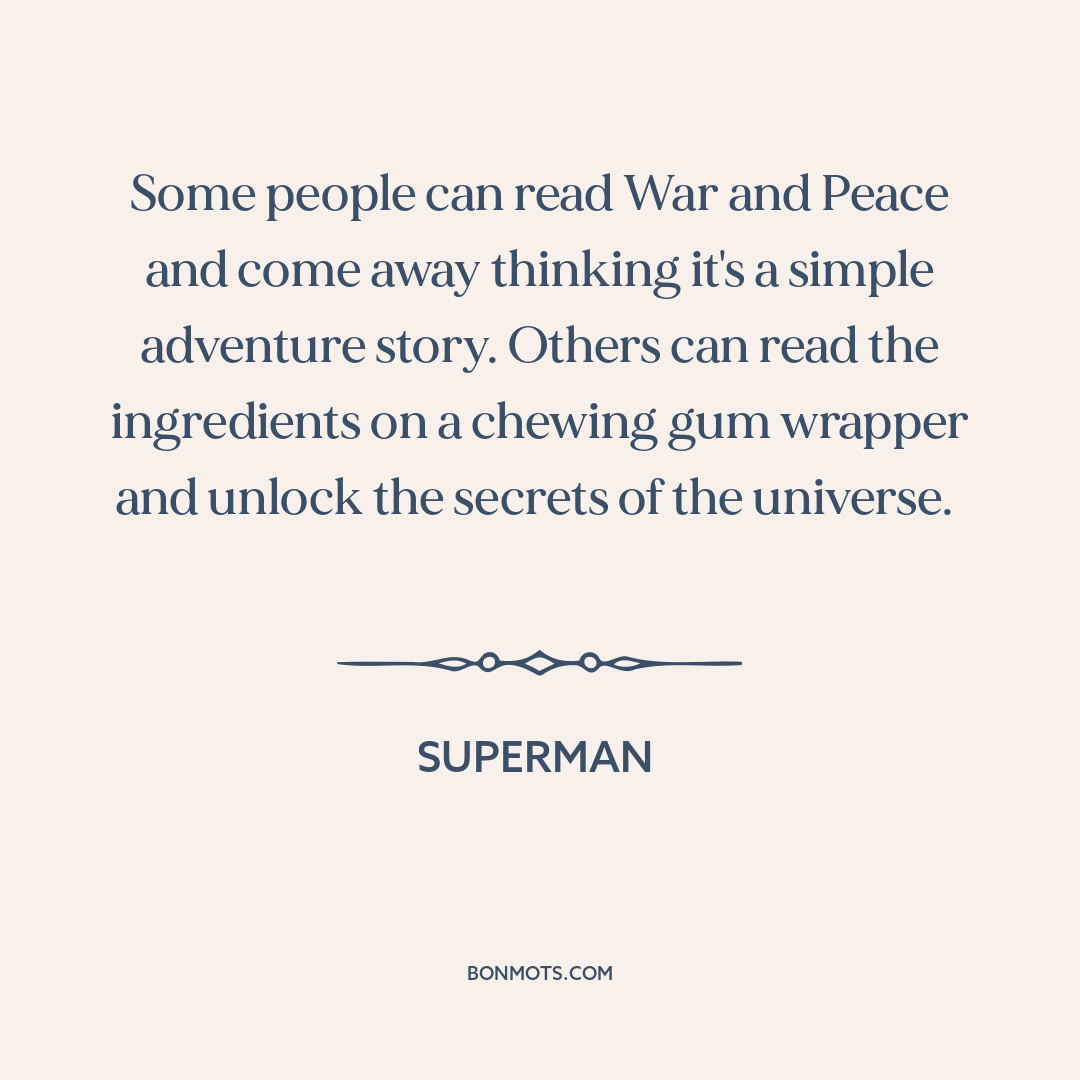 Some people can read War and Peace and come away thinking it's a simple adventure story. Others can read the ingredients on a chewing gum wrapper and unlock the secrets of the universe.