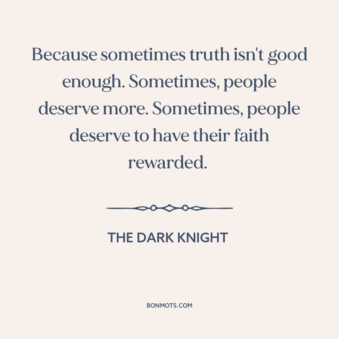 Because sometimes truth isn't good enough. Sometimes, people deserve more. Sometimes, people deserve to have their faith rewarded.