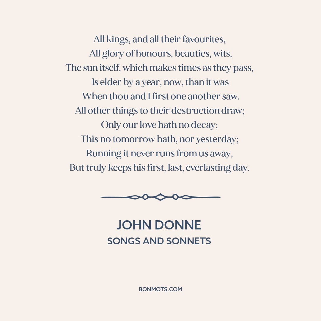 Donne, John. "The Anniversary." Songs and Sonnets. London, 1633, st. 1, I. 1.
