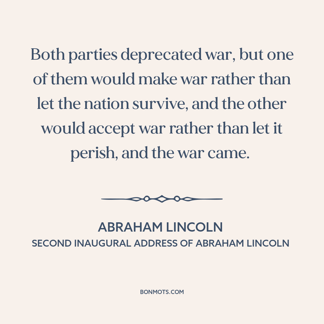 Both parties deprecated war, but one of them would make war rather than let the nation survive, and the other would accept war rather than let it perish, and the war came.
