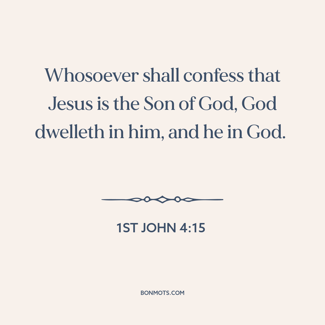 ὃς ἐὰν ὁμολογήσῃ ὅτι Ἰησοῦς ἐστιν ὁ Υἱὸς τοῦ Θεοῦ, ὁ Θεὸς ἐν αὐτῷ μένει καὶ αὐτὸς ἐν τῷ Θεῷ.