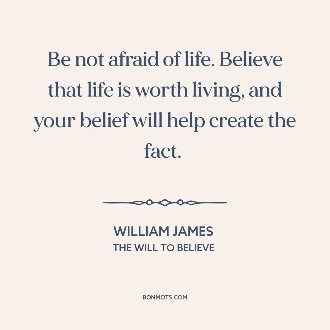 Be not afraid of life. Believe that life is worth living, and your belief will help create the fact.