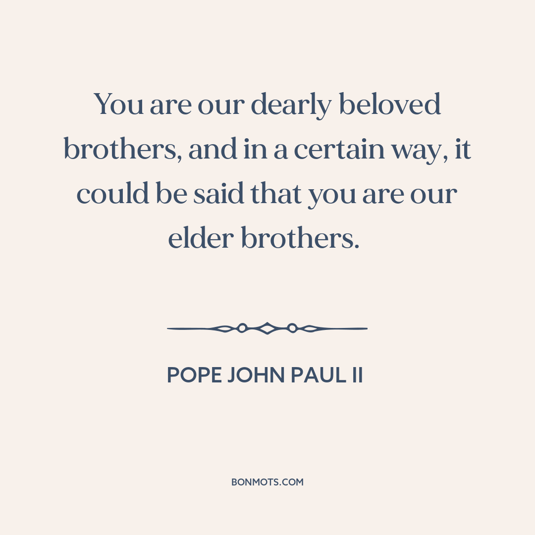 Pope John Paul II. "Text of Pope's Speech at Rome Synagogue: 'You Are Our Elder Brothers.'" The New York Times, 14 Apr. 1986, sec. A, p. 4. Originally was a speech to the Jewish Community of Rome. 13 Apr. 1986, Great Synagogue of Rome, Rome, Italy.