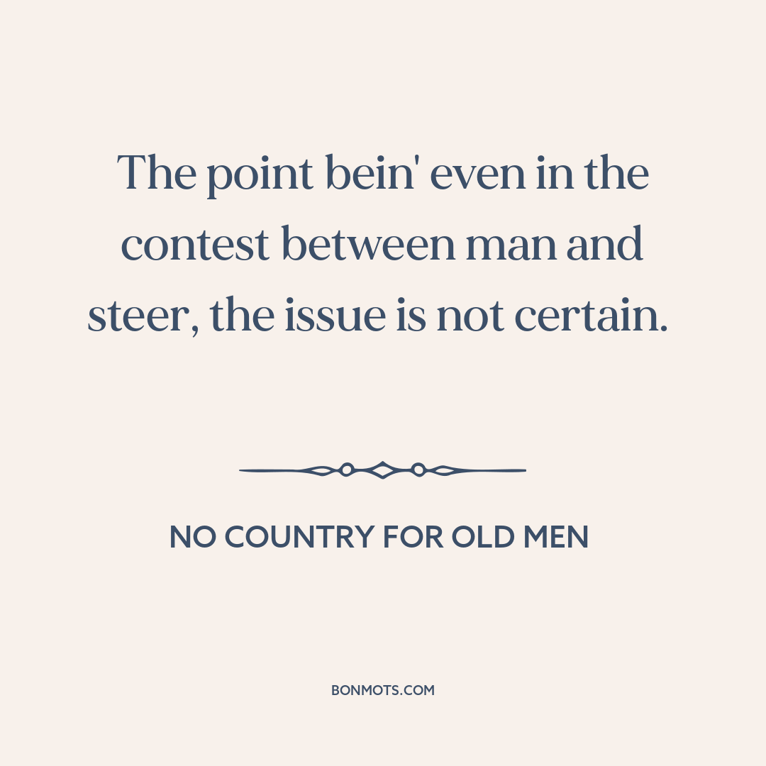 The point bein' even in the contest between man and steer, the issue is not certain.