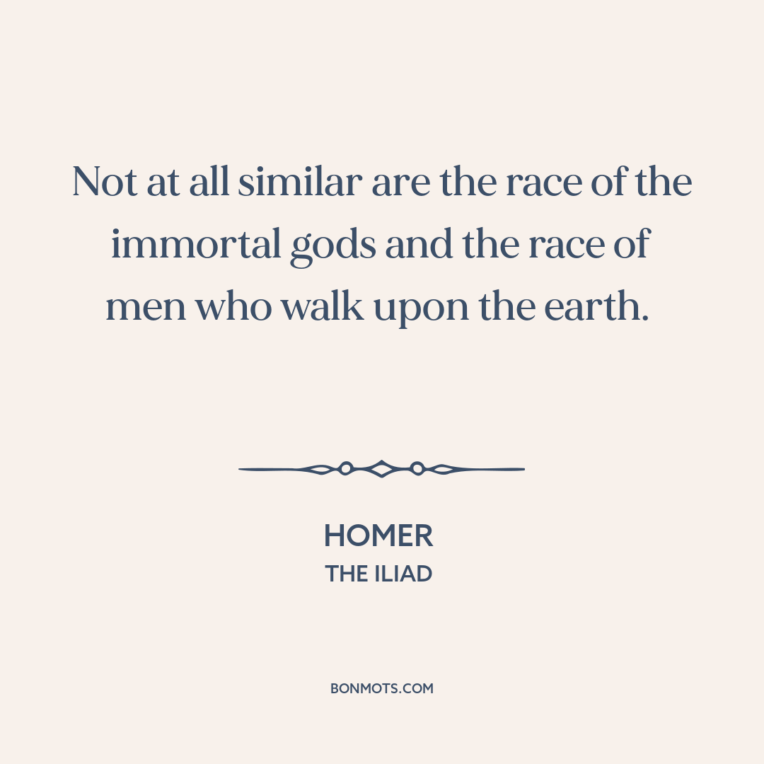 Not at all similar are the race of the immortal gods and the race of men who walk upon the earth.