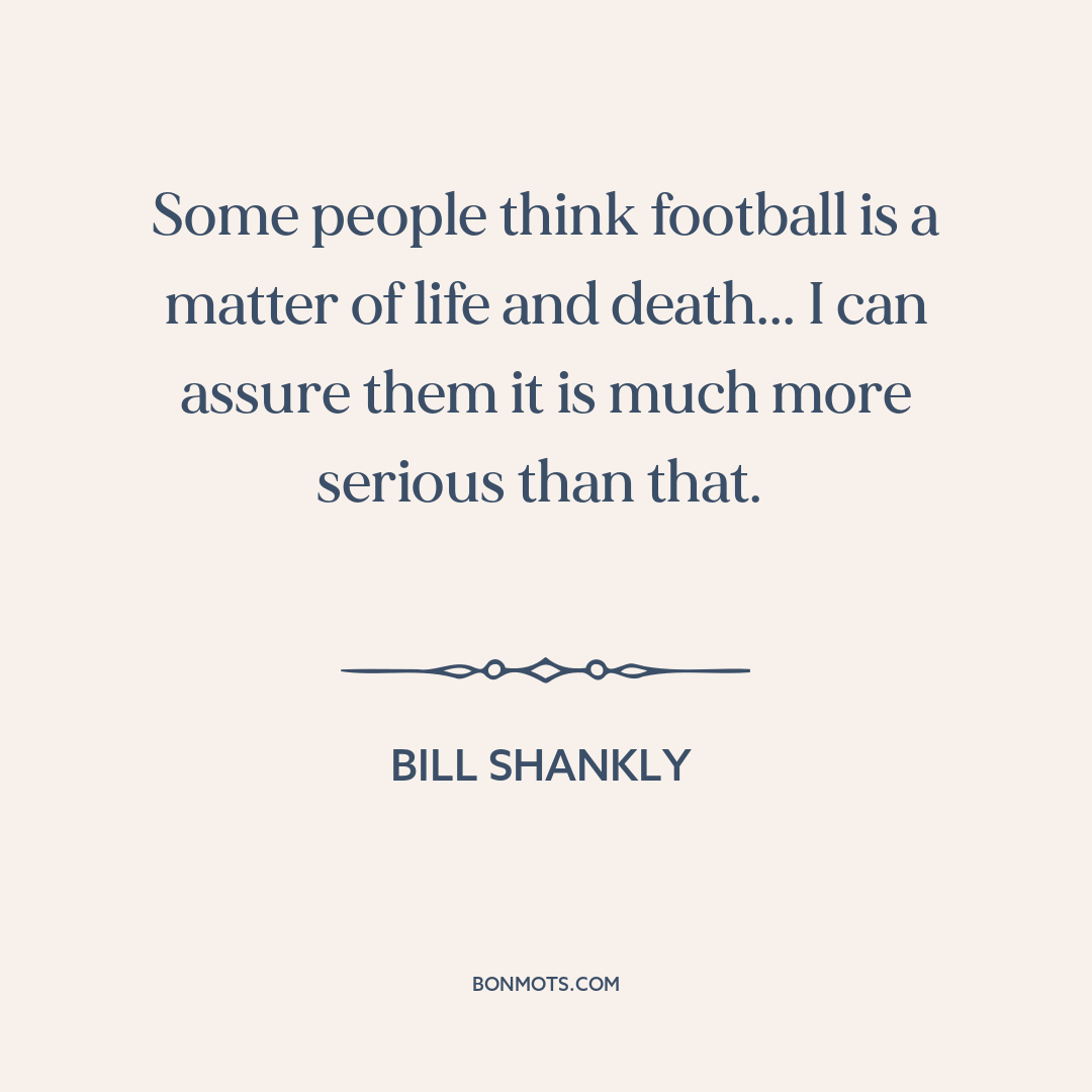 Some people think football is a matter of life and death... I can assure them it is much more serious than that.