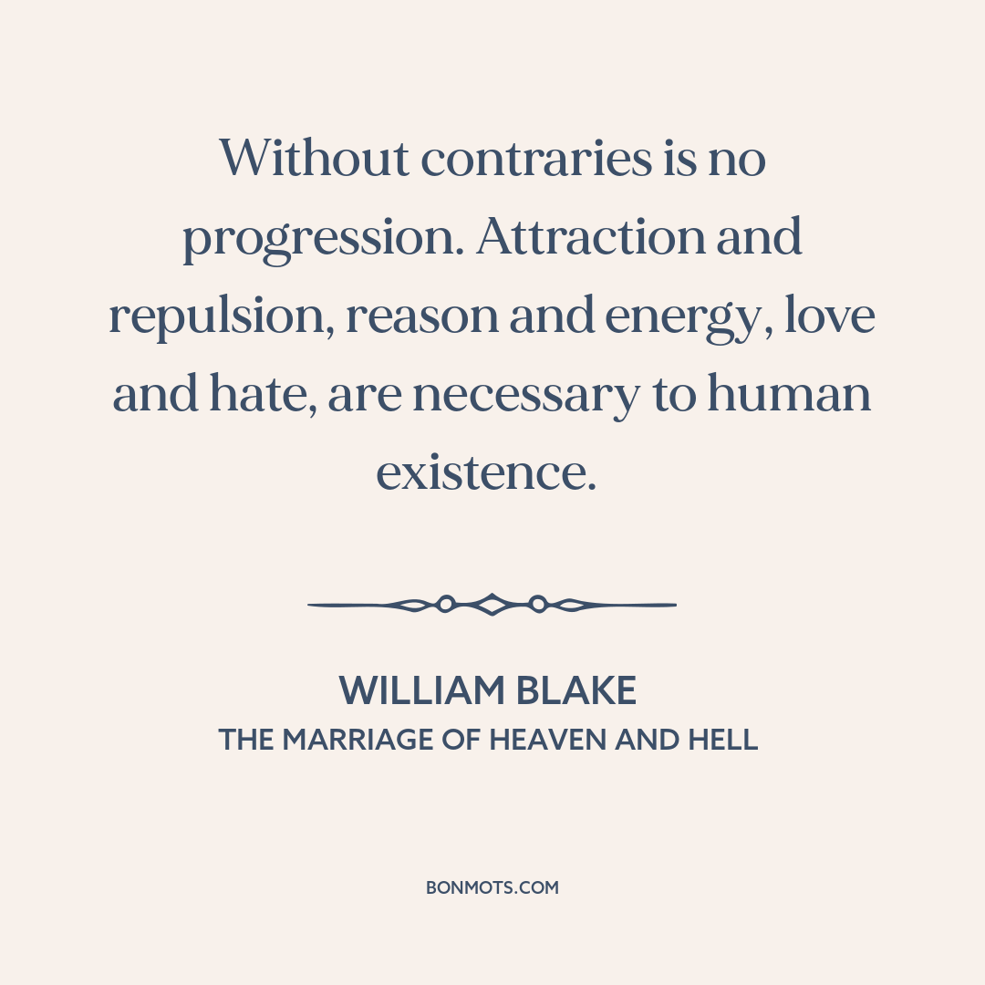 Without contraries is no progression. Attraction and repulsion, reason and energy, love and hate, are necessary to human existence.