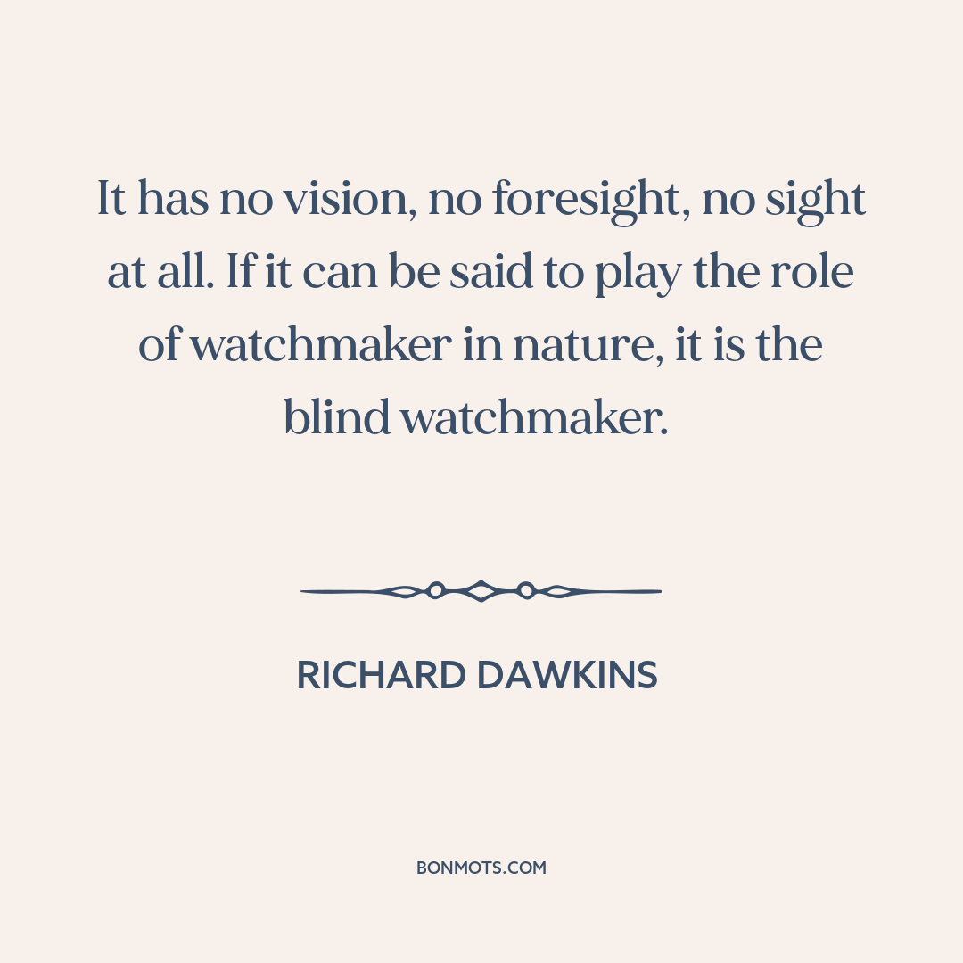 It has no vision, no foresight, no sight at all. If it can be said to play the role of watchmaker in nature, it is the blind watchmaker.
