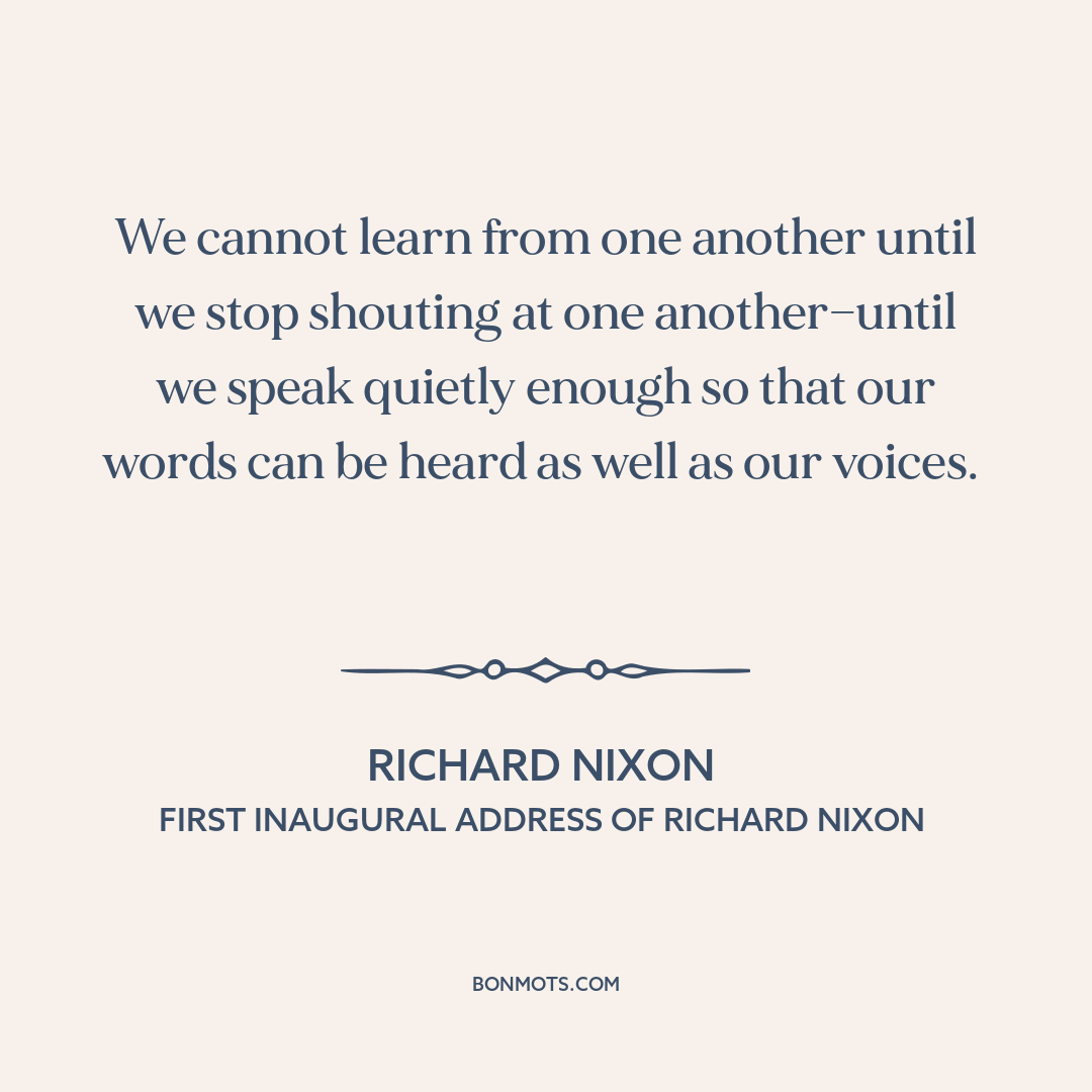 We cannot learn from one another until we stop shouting at one another—until we speak quietly enough so that our words can be heard as well as our voices.