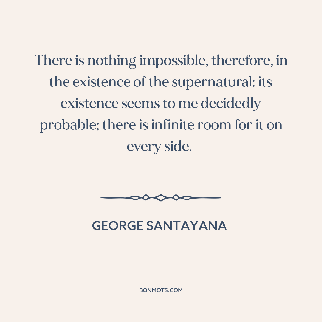 There is nothing impossible, therefore, in the existence of the supernatural: its existence seems to me decidedly probable; there is infinite room for it on every side.