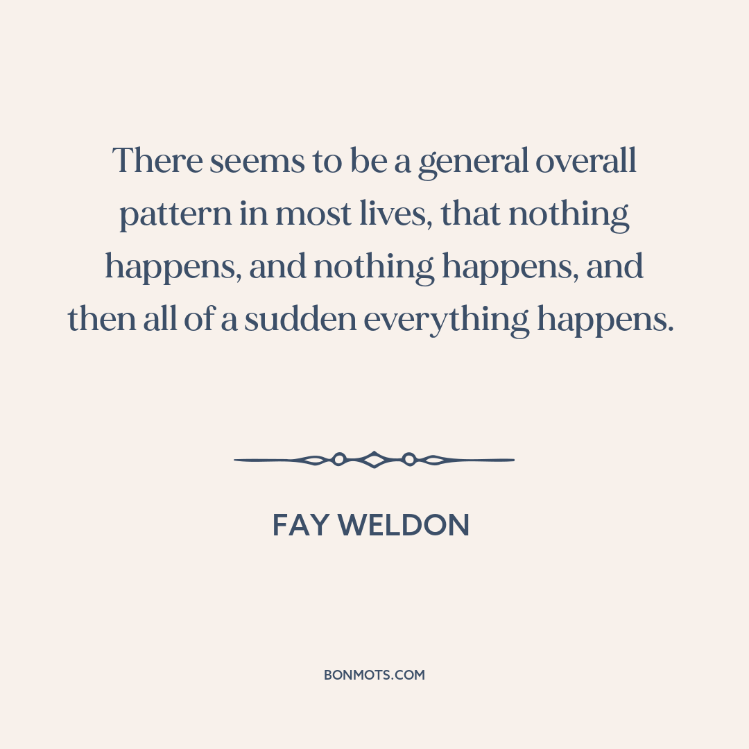 There seems to be a general overall pattern in most lives, that nothing happens, and nothing happens, and then all of a sudden everything happens.