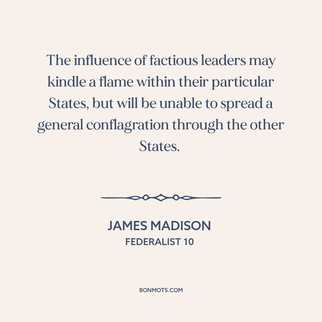 The influence of factious leaders may kindle a flame within their particular States, but will be unable to spread a general conflagration through the other States.