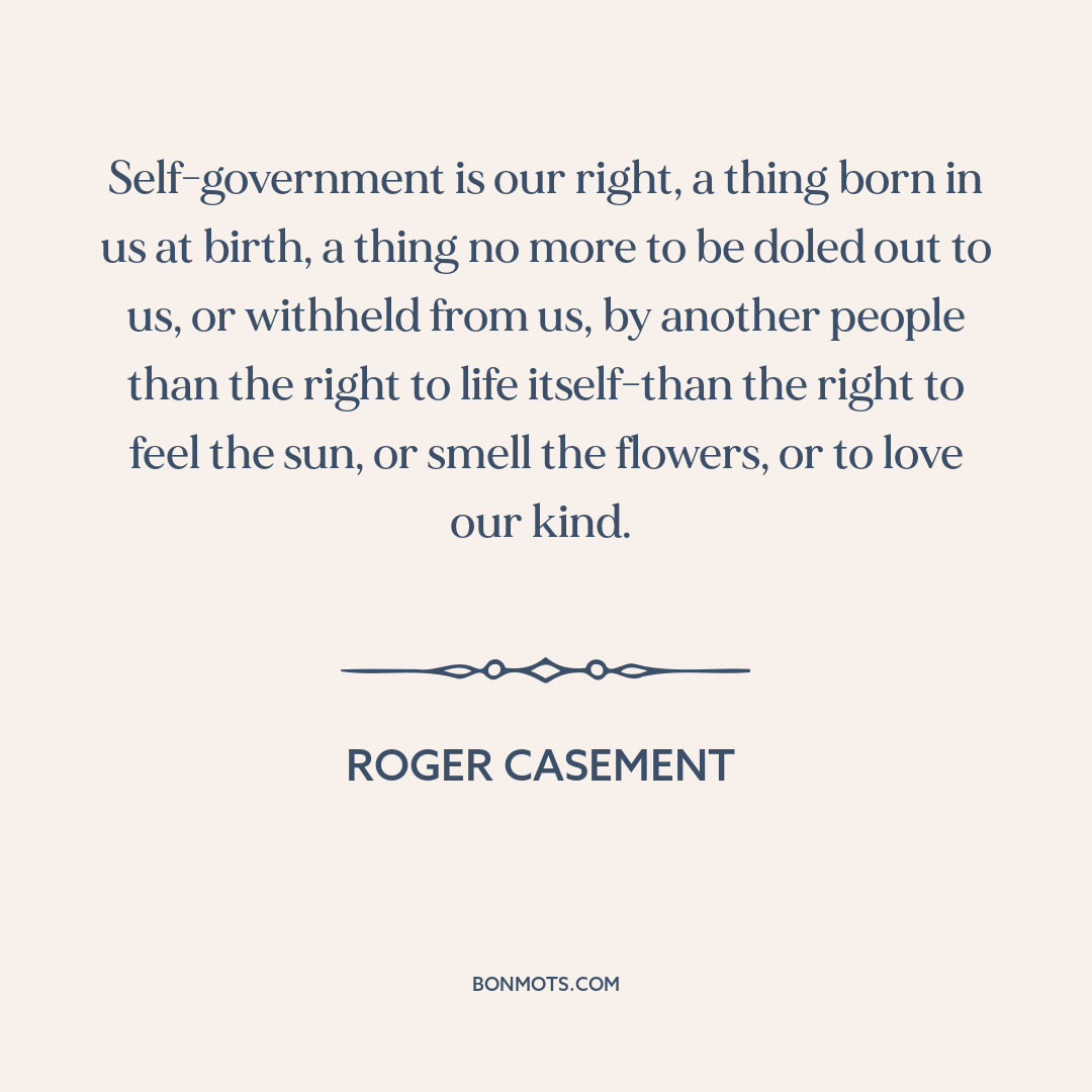 Self-government is our right, a thing born in us at birth, a thing no more to be doled out to us, or withheld from us, by another people than the right to life itself-than the right to feel the sun, or smell the flowers, or to love our kind.