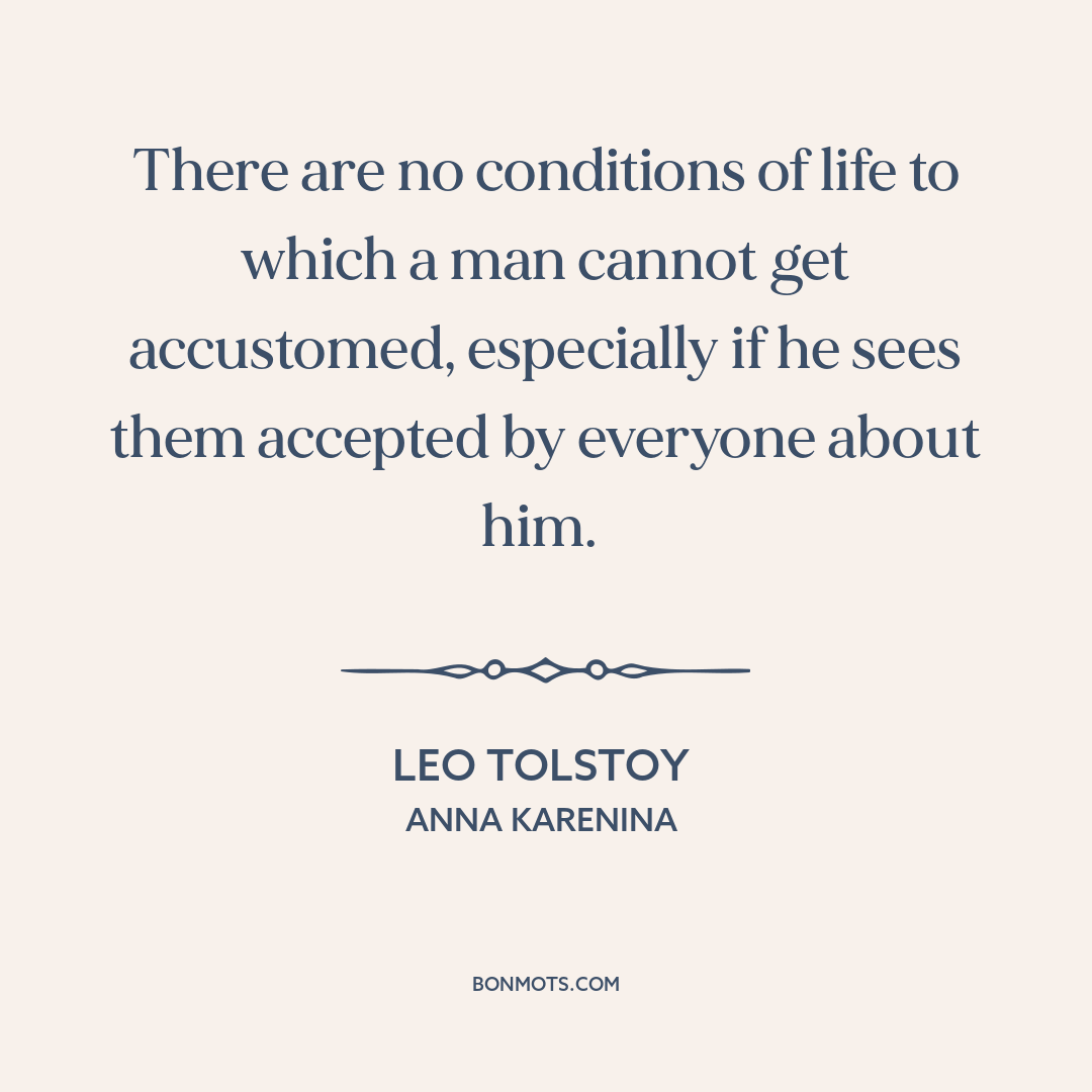 There are no conditions of life to which a man cannot get accustomed, especially if he sees them accepted by everyone about him.
