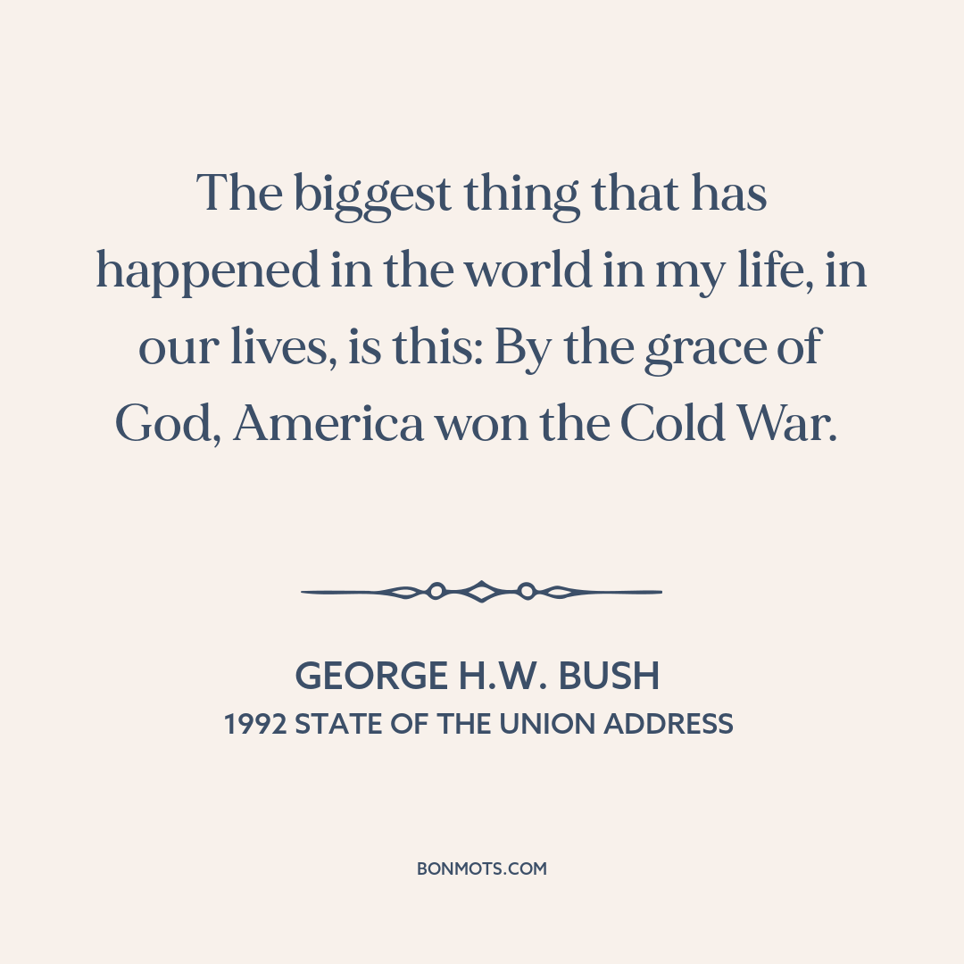 The biggest thing that has happened in the world in my life, in our lives, is this: By the grace of God, America won the Cold War.
