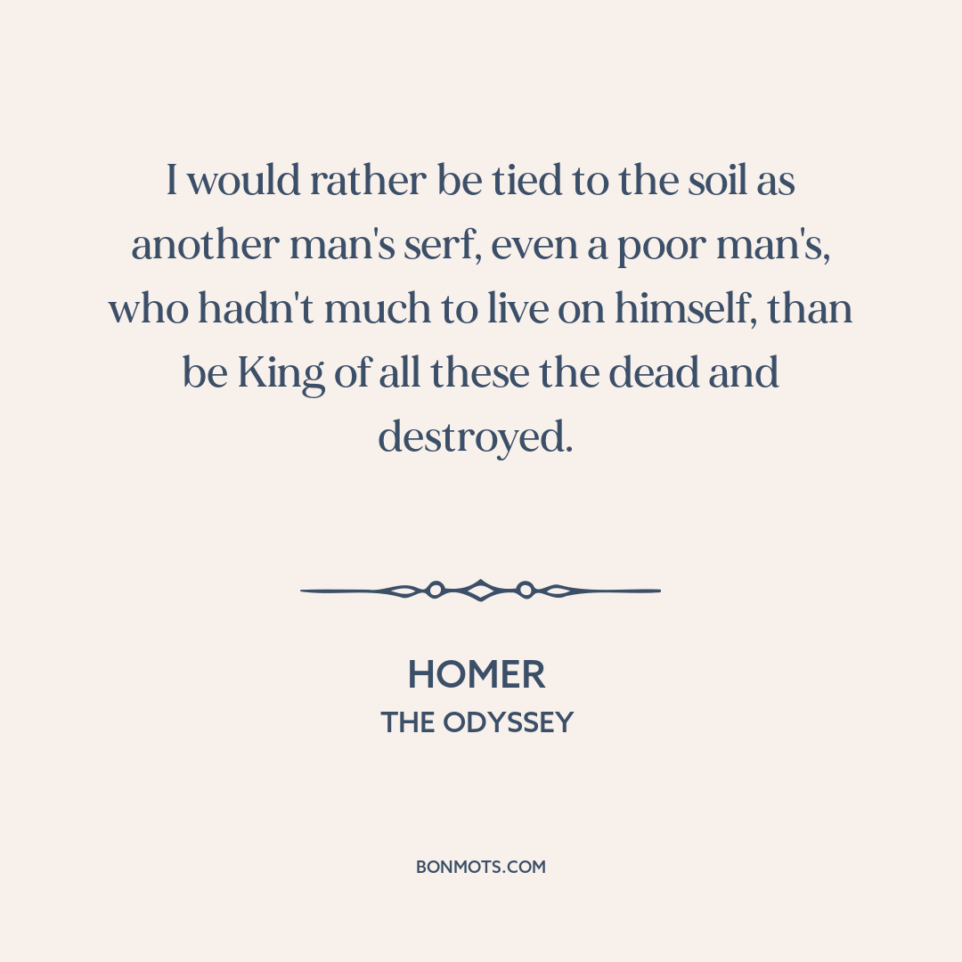 I would rather be tied to the soil as another man's serf, even a poor man's, who hadn't much to live on himself, than be King of all these the dead and destroyed.