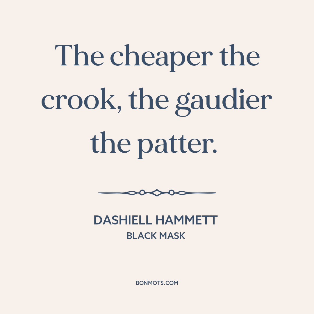 The cheaper the crook, the gaudier the patter.
