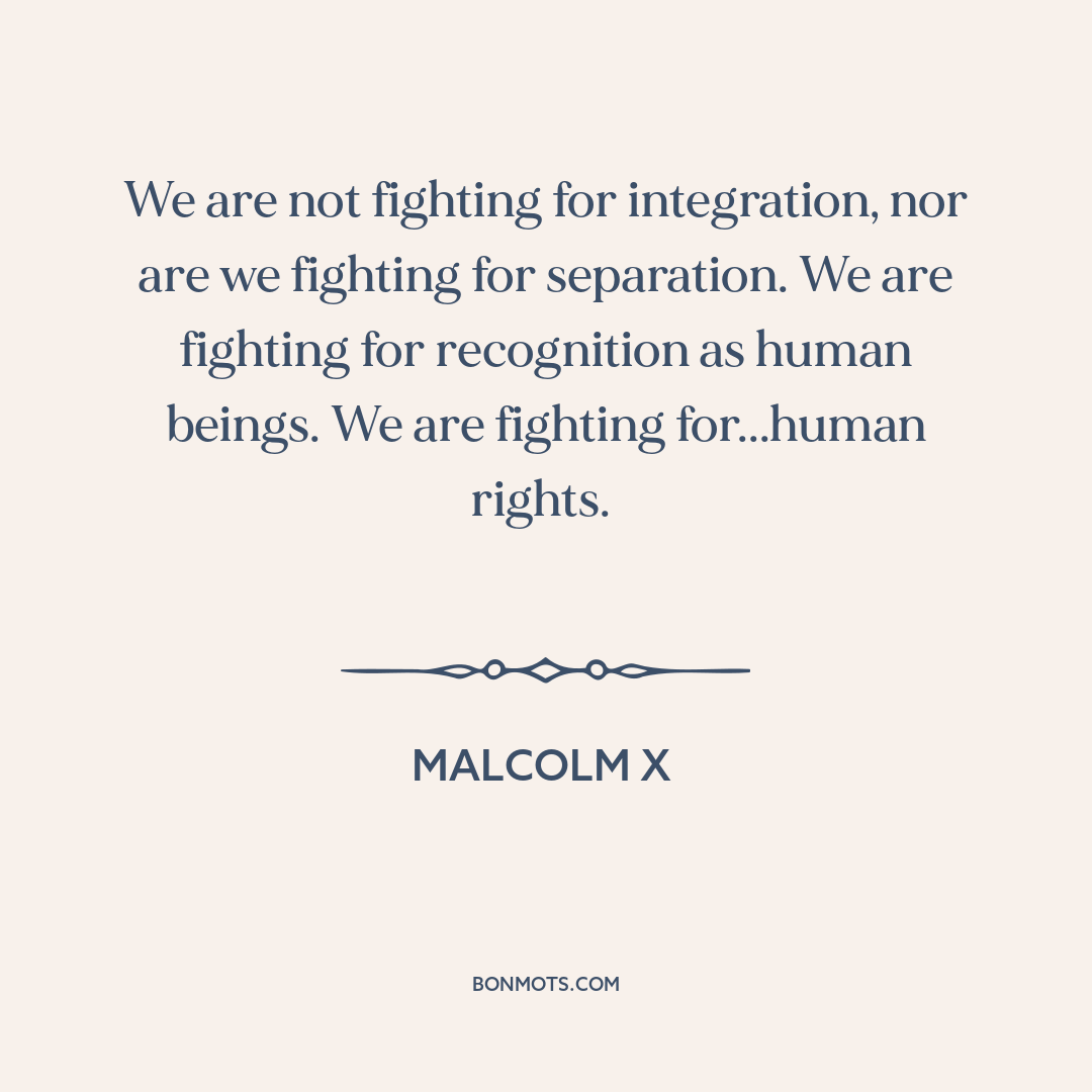 We are not fighting for integration, nor are we fighting for separation. We are fighting for recognition as human beings. We are fighting for...human rights.