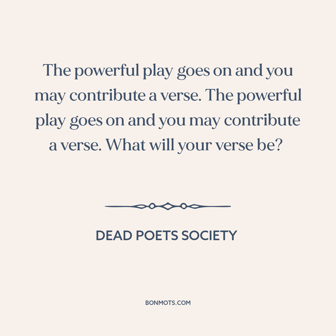 The powerful play goes on and you may contribute a verse. The powerful play goes on and you may contribute a verse. What will your verse be?