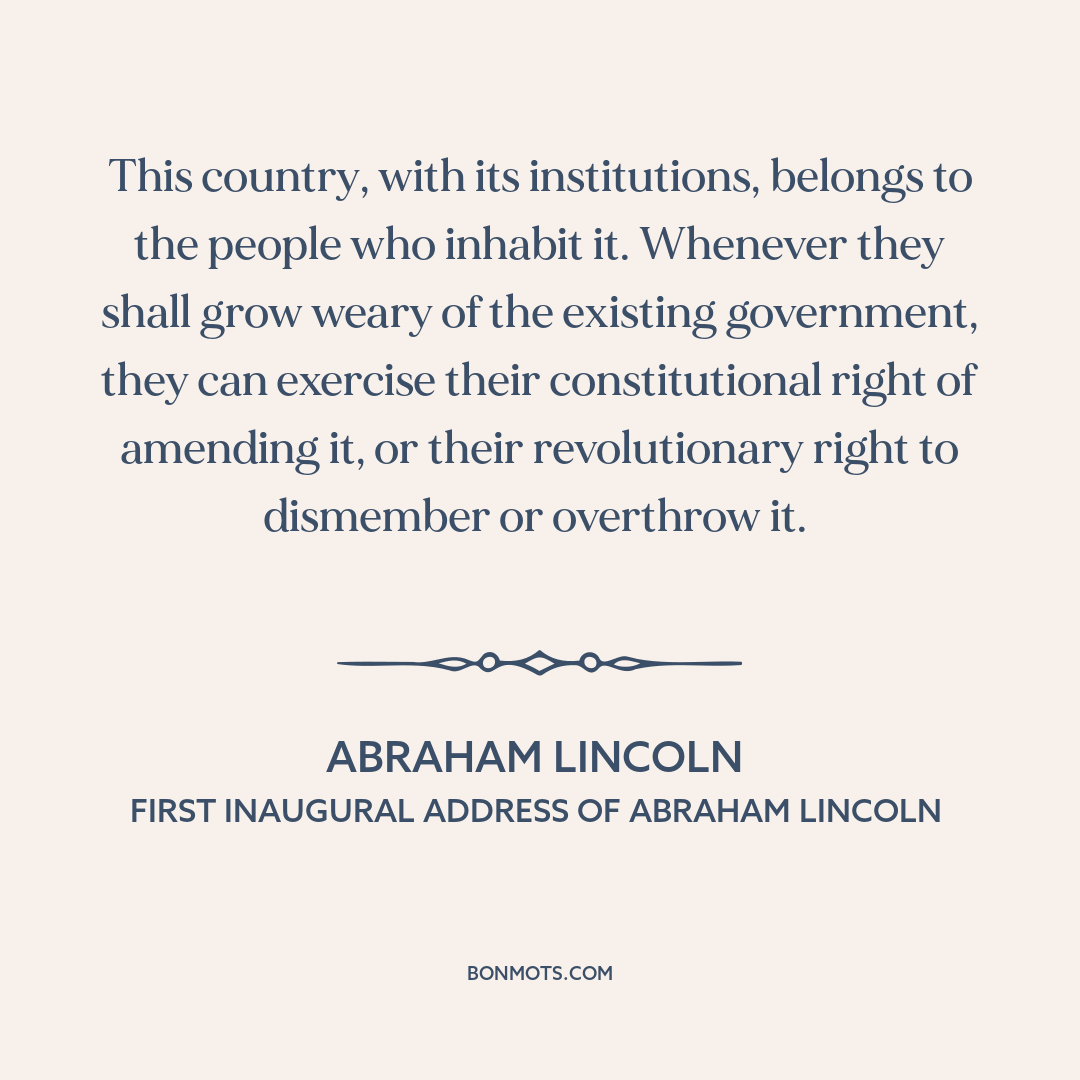 This country, with its institutions, belongs to the people who inhabit it. Whenever they shall grow weary of the existing government, they can exercise their constitutional right of amending it, or their revolutionary right to dismember or overthrow it.