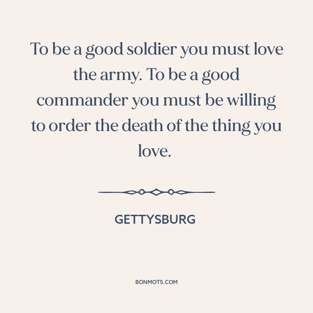 To be a good soldier you must love the army. To be a good commander you must be willing to order the death of the thing you love.