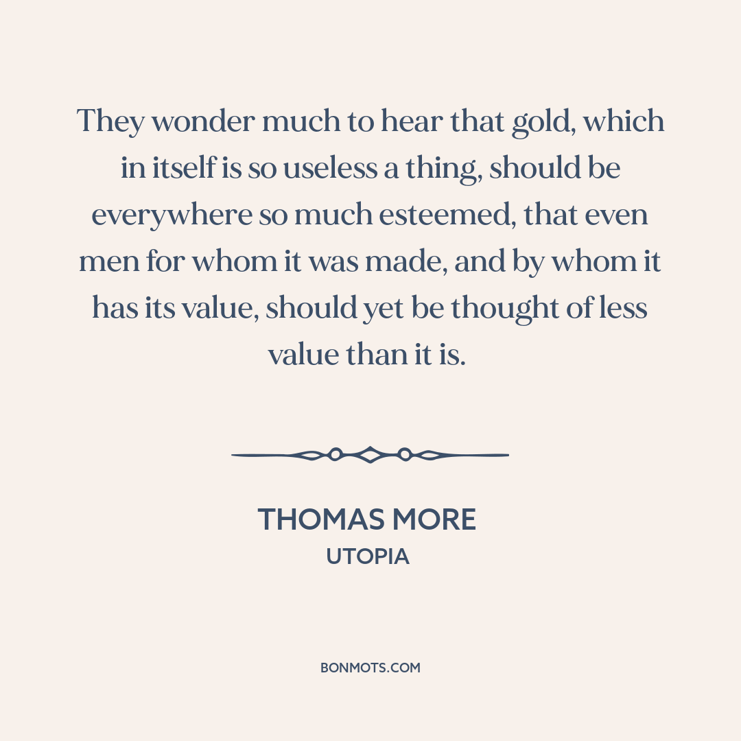 They wonder much to hear that gold, which in itself is so useless a thing, should be everywhere so much esteemed, that even men for whom it was made, and by whom it has its value, should yet be thought of less value than it is.