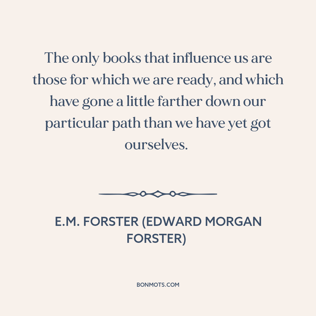 The only books that influence us are those for which we are ready, and which have gone a little farther down our particular path than we have yet got ourselves.