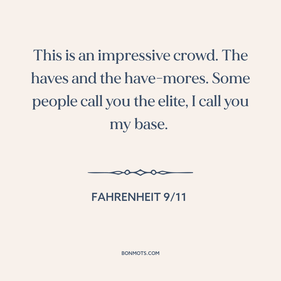 This is an impressive crowd. The haves and the have-mores. Some people call you the elite, I call you my base.