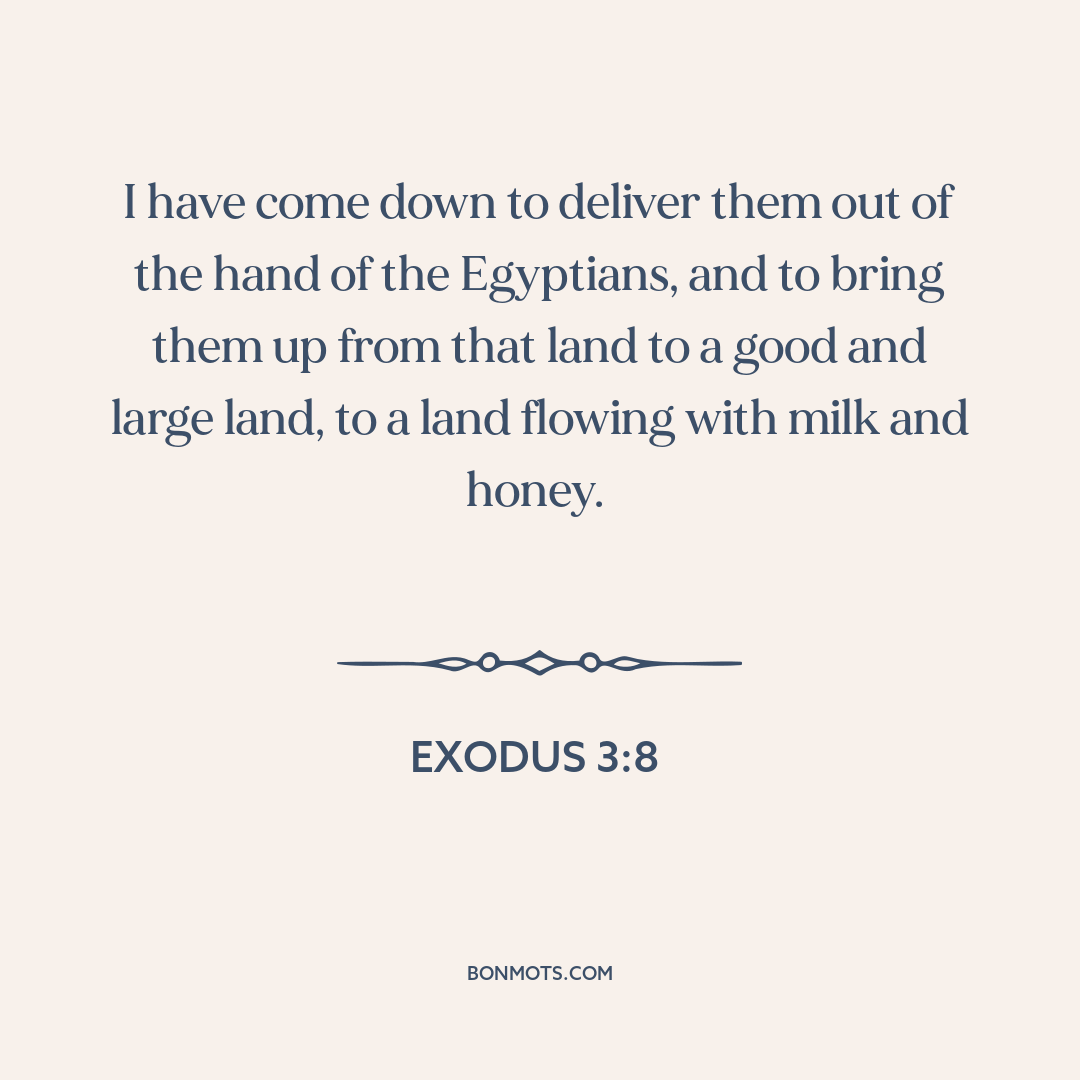 I have come down to deliver them out of the hand of the Egyptians, and to bring them up from that land to a good and large land, to a land flowing with milk and honey.