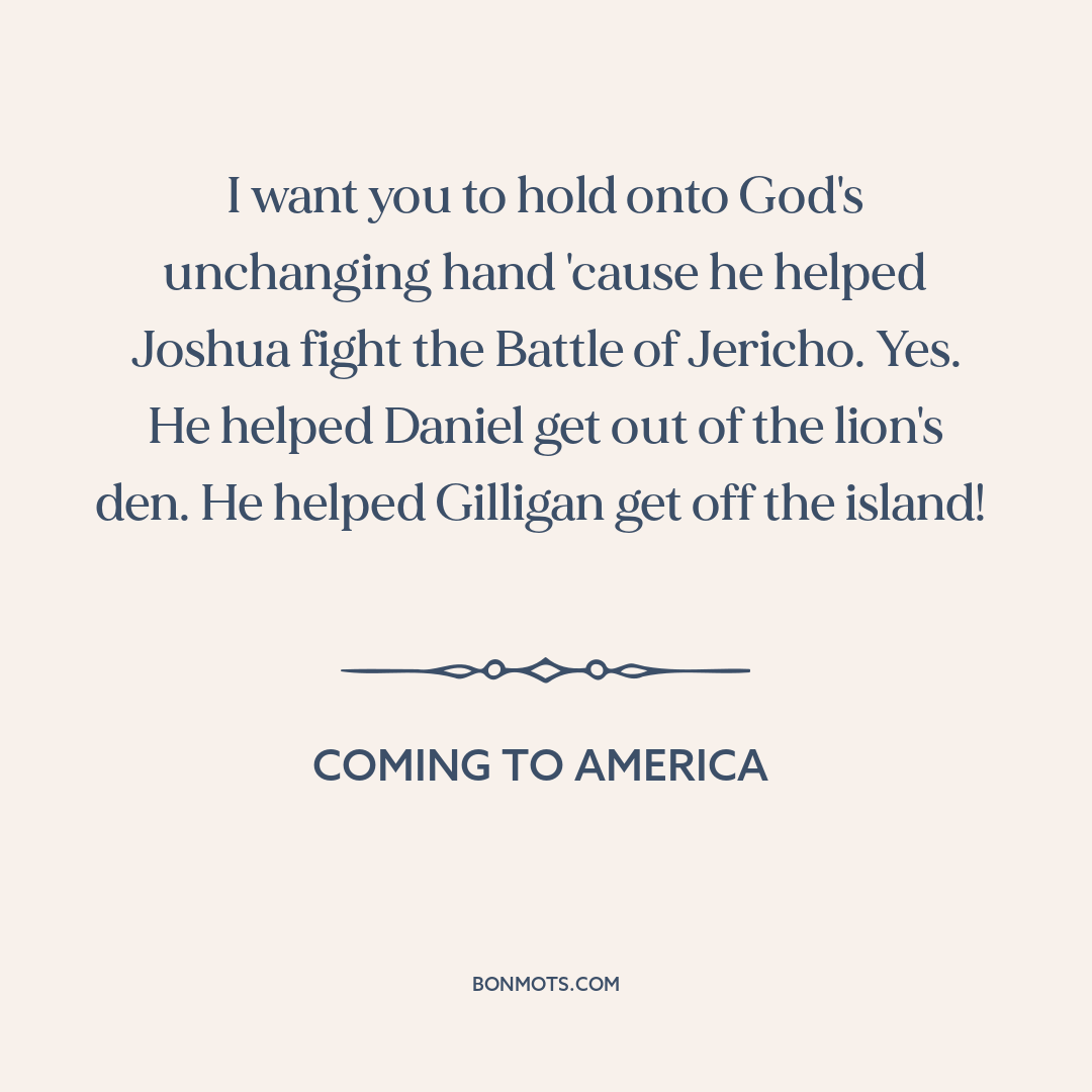I want you to hold onto God's unchanging hand 'cause he helped Joshua fight the Battle of Jericho. Yes. He helped Daniel get out of the lion's den. He helped Gilligan get off the island!
