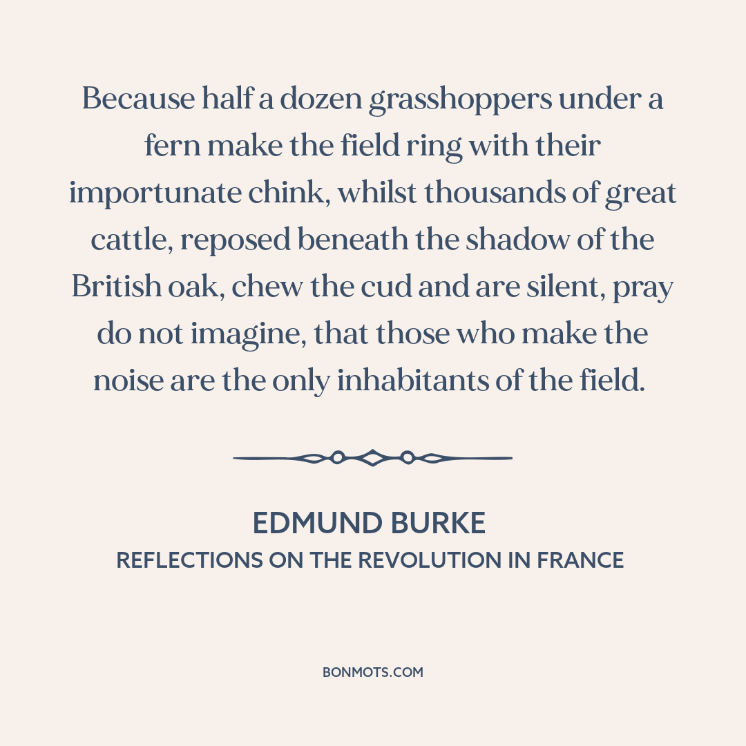 Because half a dozen grasshoppers under a fern make the field ring with their importunate chink, whilst thousands of great cattle, reposed beneath the shadow of the British oak, chew the cud and are silent, pray do not imagine, that those who make the noise are the only inhabitants of the field.