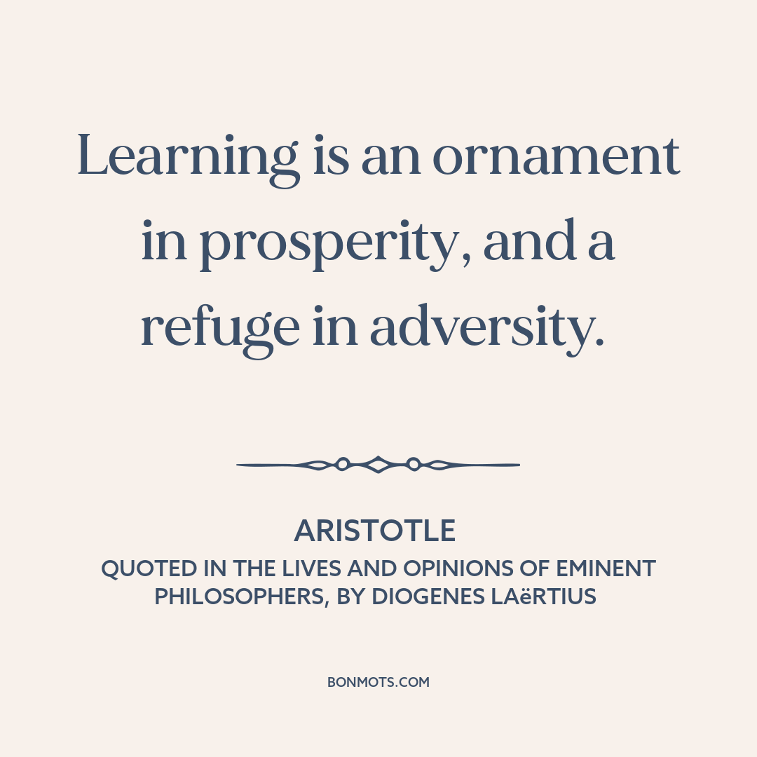 Learning is an ornament in prosperity, and a refuge in adversity.