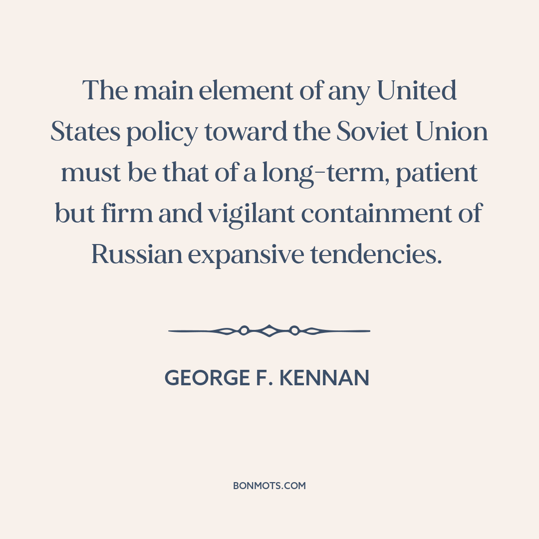 The main element of any United States policy toward the Soviet Union must be that of a long-term, patient but firm and vigilant containment of Russian expansive tendencies.