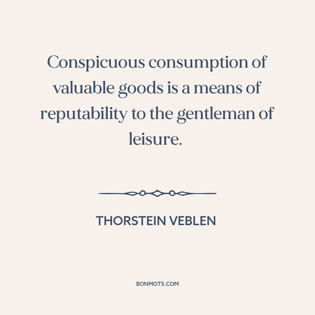 Conspicuous consumption of valuable goods is a means of reputability to the gentleman of leisure.