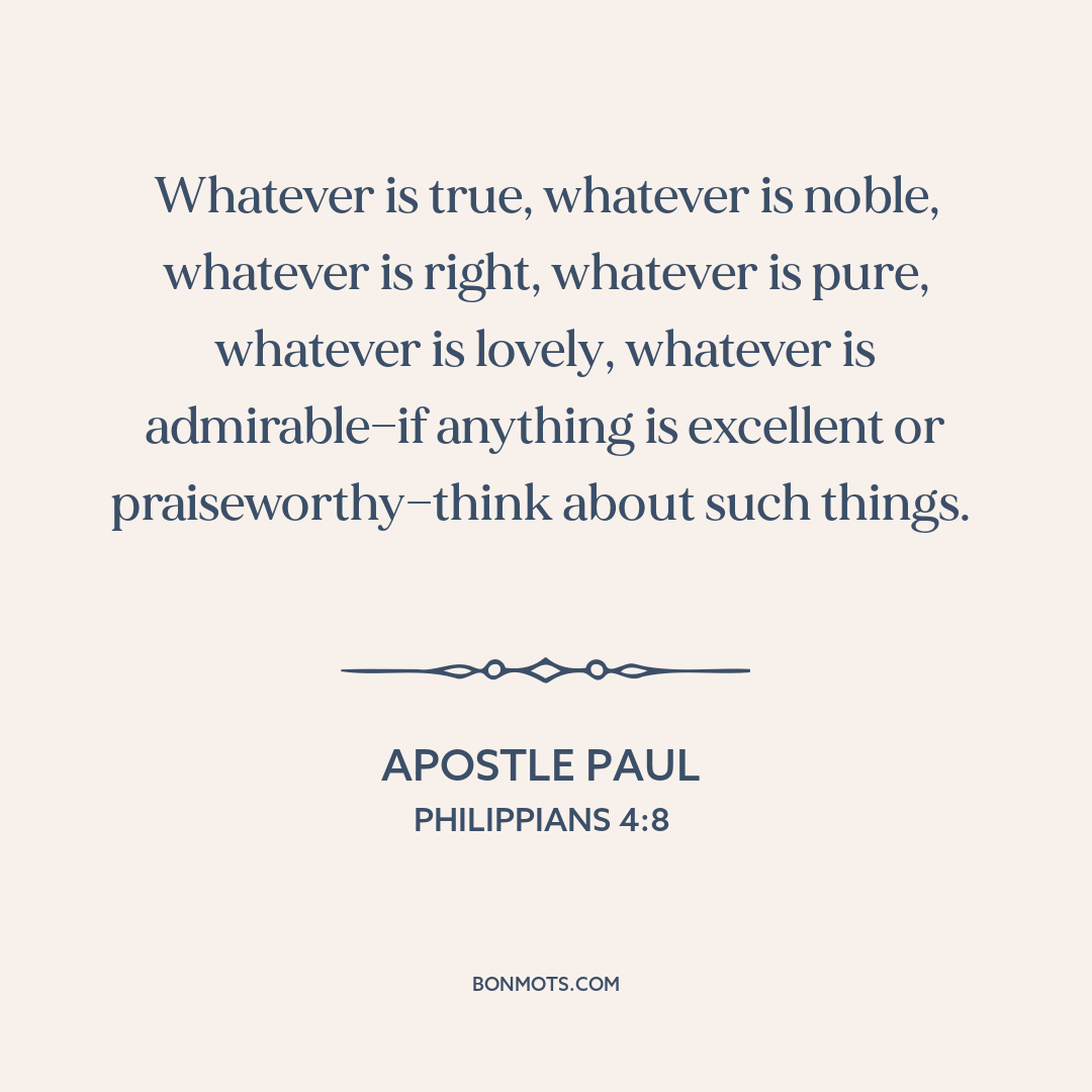Whatever is true, whatever is noble, whatever is right, whatever is pure, whatever is lovely, whatever is admirable—if anything is excellent or praiseworthy—think about such things.