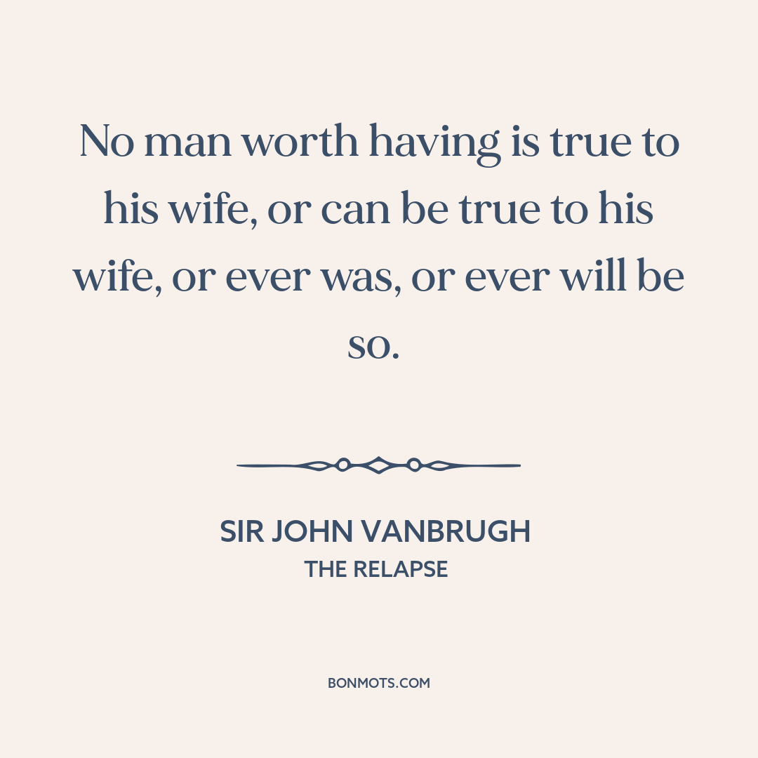 No man worth having is true to his wife, or can be true to his wife, or ever was, or ever will be so.