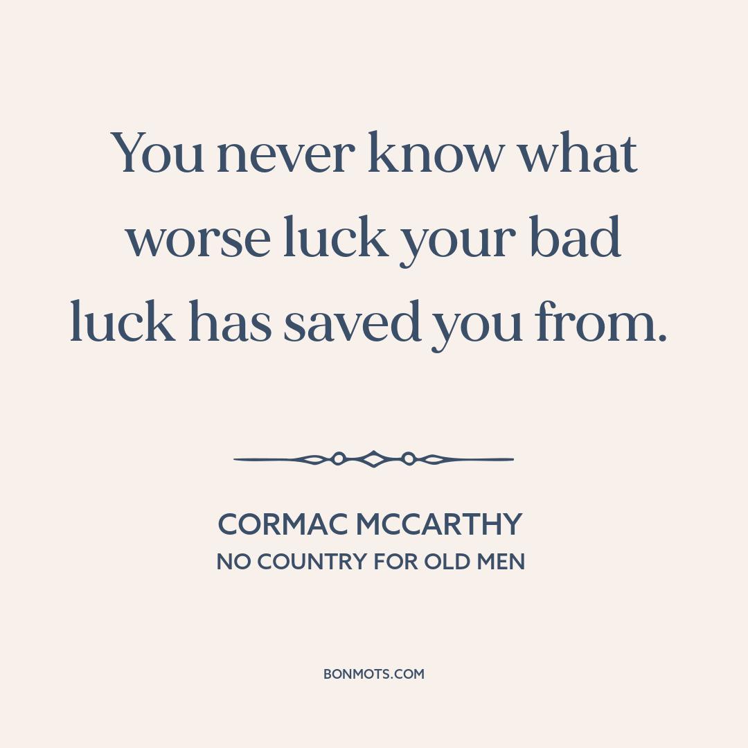 You never know what worse luck your bad luck has saved you from.