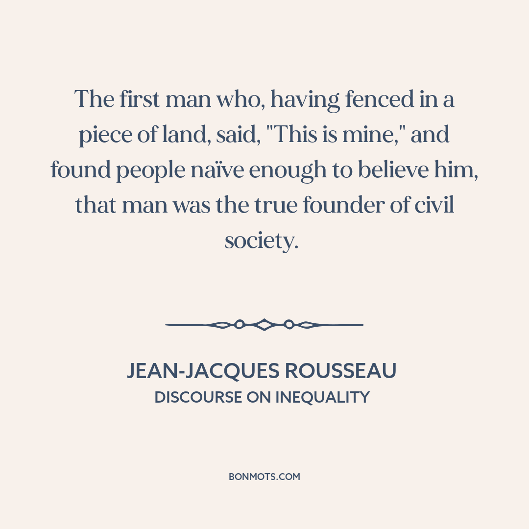 The first man who, having fenced in a piece of land, said, "This is mine," and found people naïve enough to believe him, that man was the true founder of civil society.