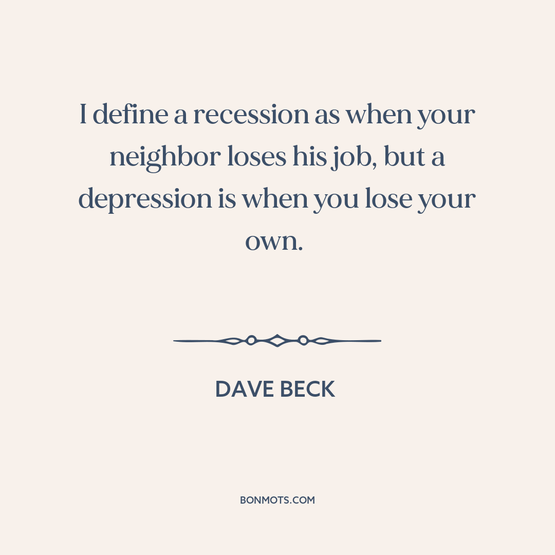 I define a recession as when your neighbor loses his job, but a depression is when you lose your own.