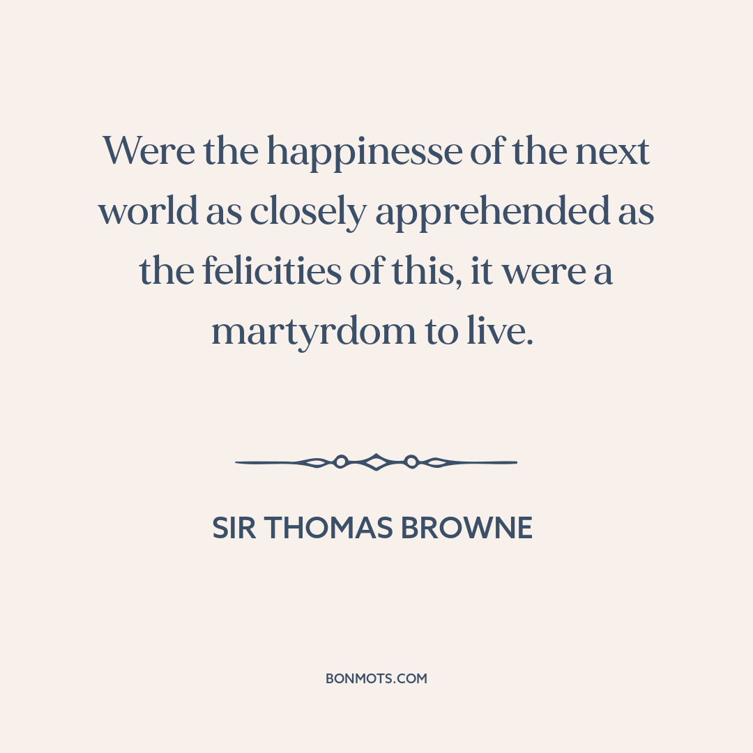 Were the happinesse of the next world as closely apprehended as the felicities of this, it were a martyrdom to live.