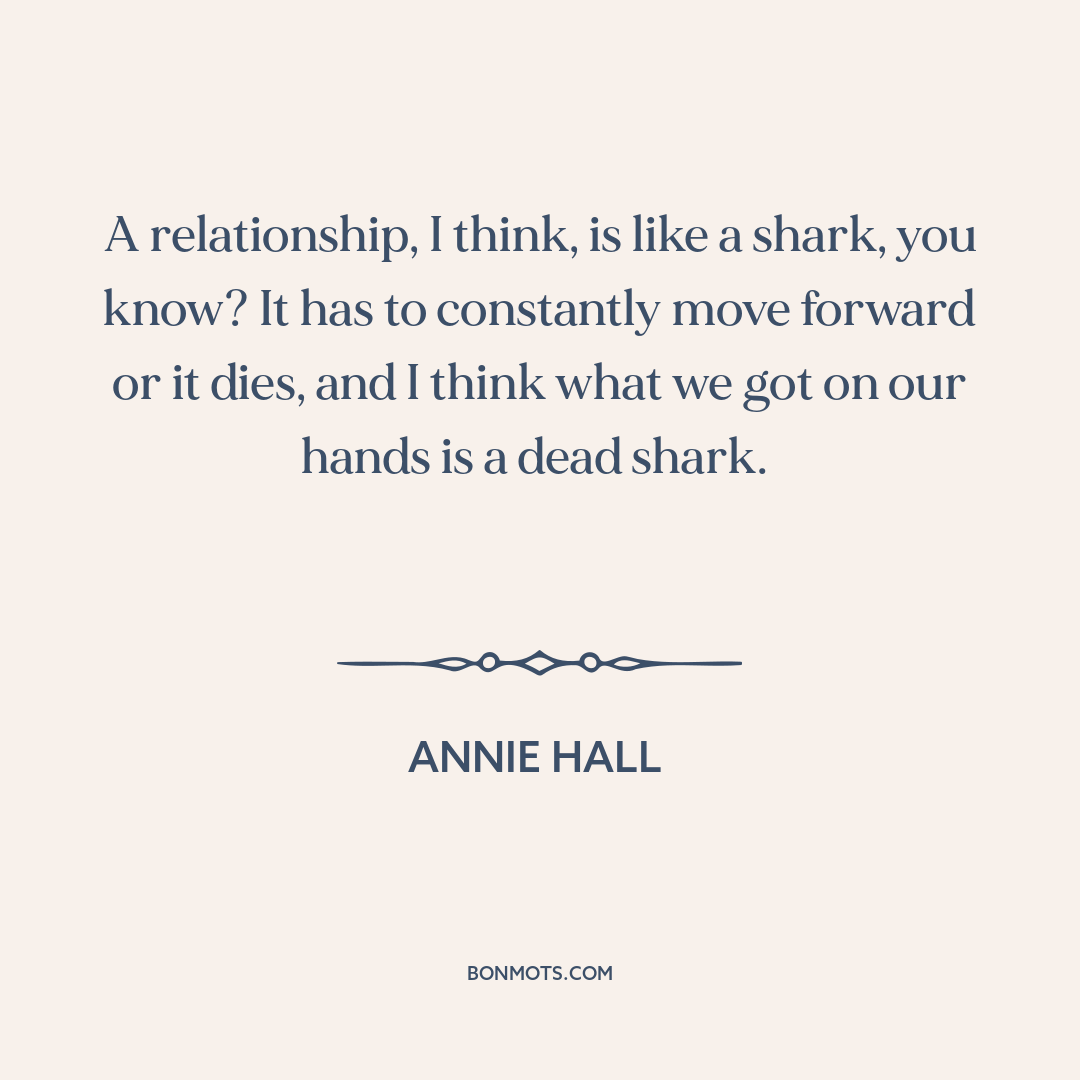 A relationship, I think, is like a shark, you know? It has to constantly move forward or it dies, and I think what we got on our hands is a dead shark.