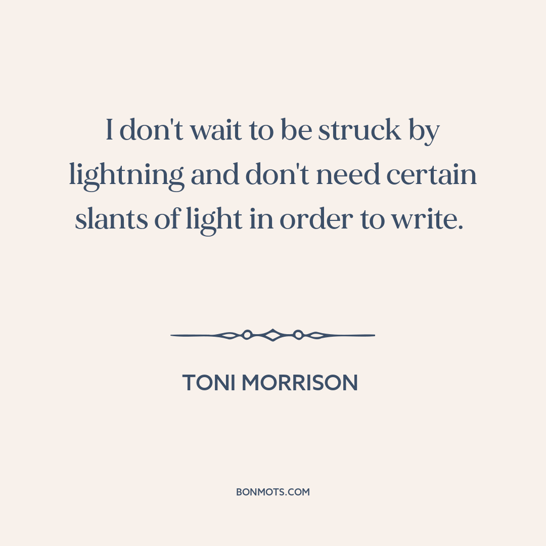 I don't wait to be struck by lightning and don't need certain slants of light in order to write.