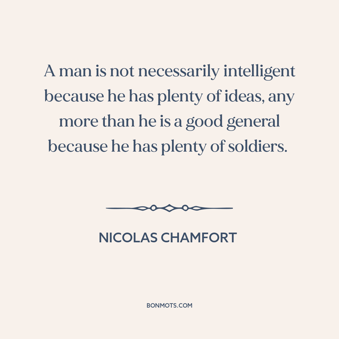 A man is not necessarily intelligent because he has plenty of ideas, any more than he is a good general because he has plenty of soldiers.