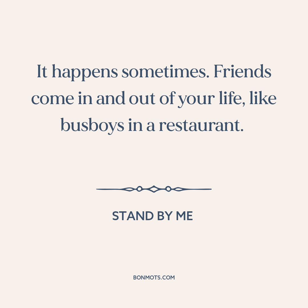 It happens sometimes. Friends come in and out of your life, like busboys in a restaurant.