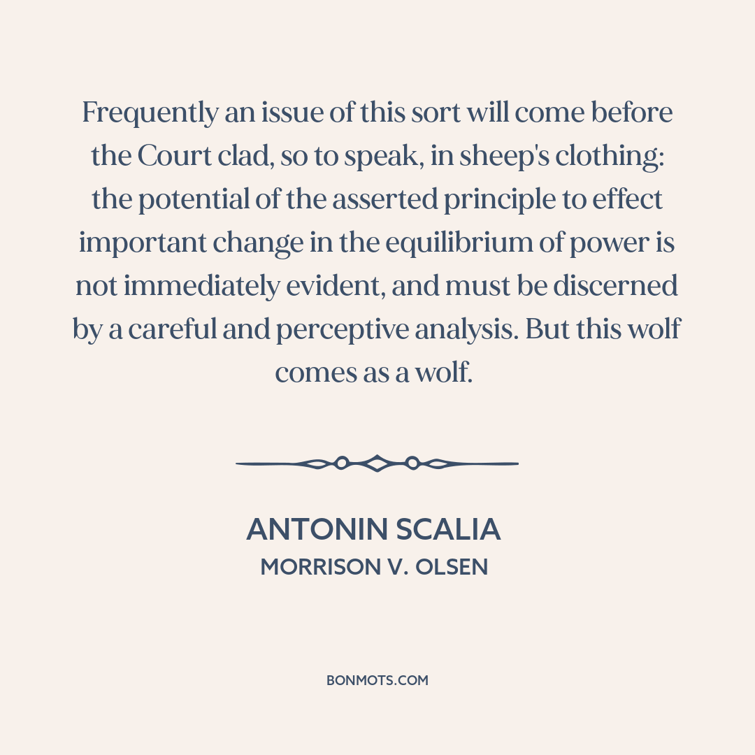 Frequently an issue of this sort will come before the Court clad, so to speak, in sheep's clothing: the potential of the asserted principle to effect important change in the equilibrium of power is not immediately evident, and must be discerned by a careful and perceptive analysis. But this wolf comes as a wolf.