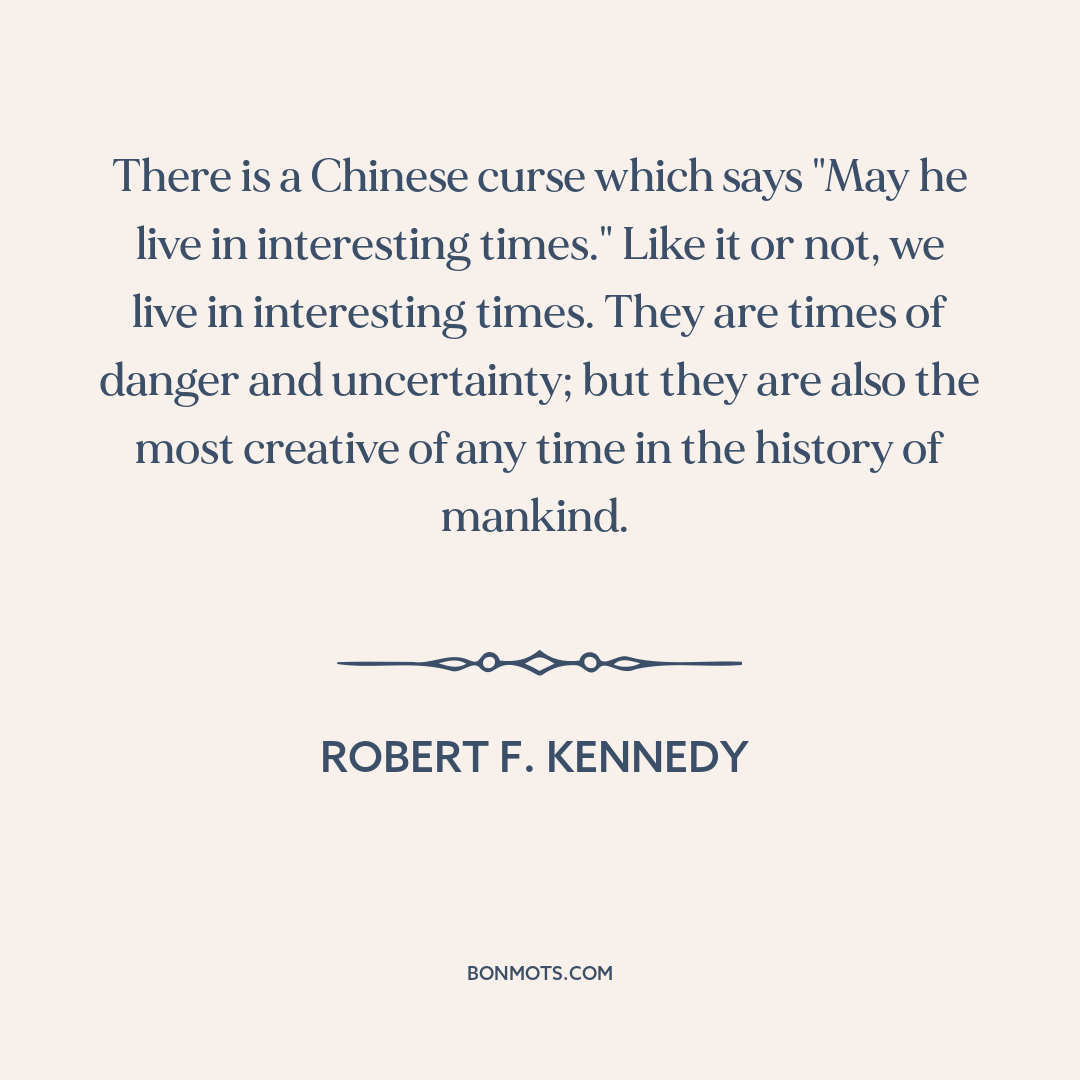 There is a Chinese curse which says "May he live in interesting times." Like it or not, we live in interesting times. They are times of danger and uncertainty; but they are also the most creative of any time in the history of mankind.
